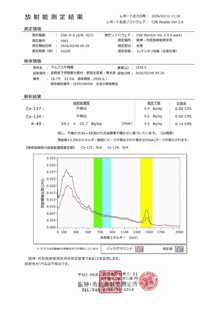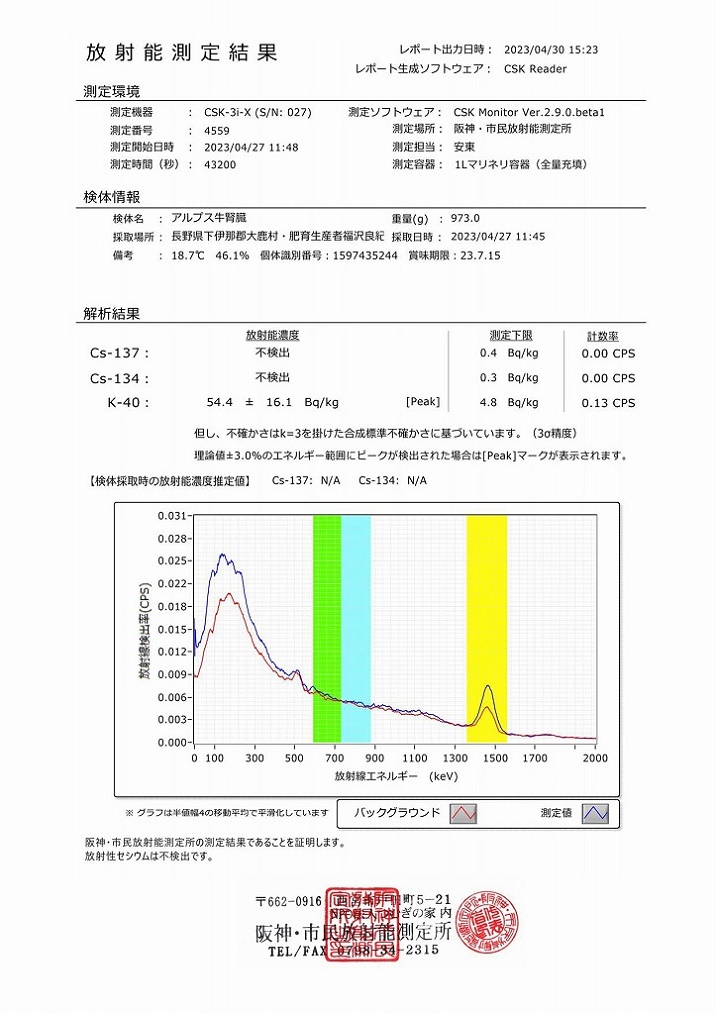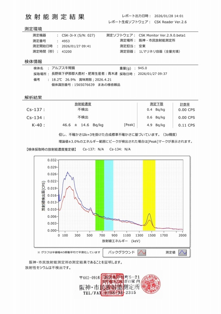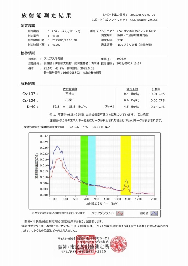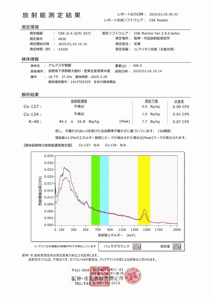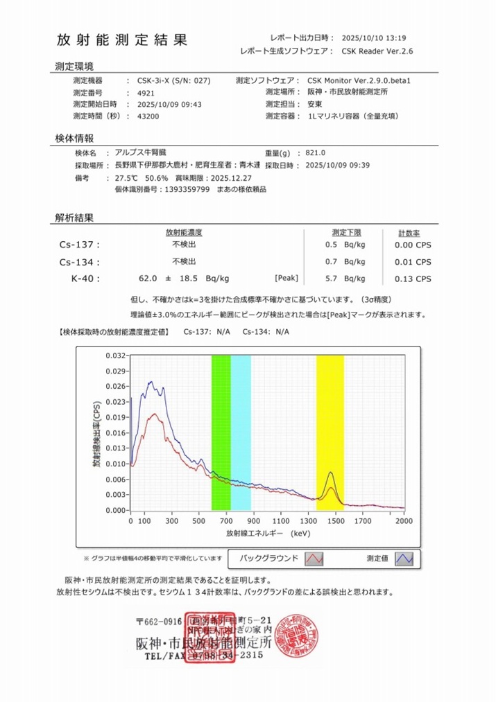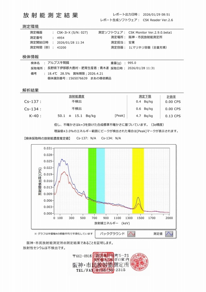 現在お肉は阪神・市民放射能測定所で定期的に放射能検査をしています。