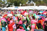 ひとくぎりの10回に新たなページを加える「第11回東大阪国際交流フェスティバル」が、2006年11月3日、青空のもと開催されました。 《いきいきした参加者の表情がフェスタの命》 今年のフェスティバルで最も印象に残ったのは、約7000人の参加者のうちの多くの方々が長い時間、会場内にとどまって舞台をみたり、出店を訪れたり、さらに周りの市民と交流を深めるなど、三ノ瀬公園に活気があふれたことです。